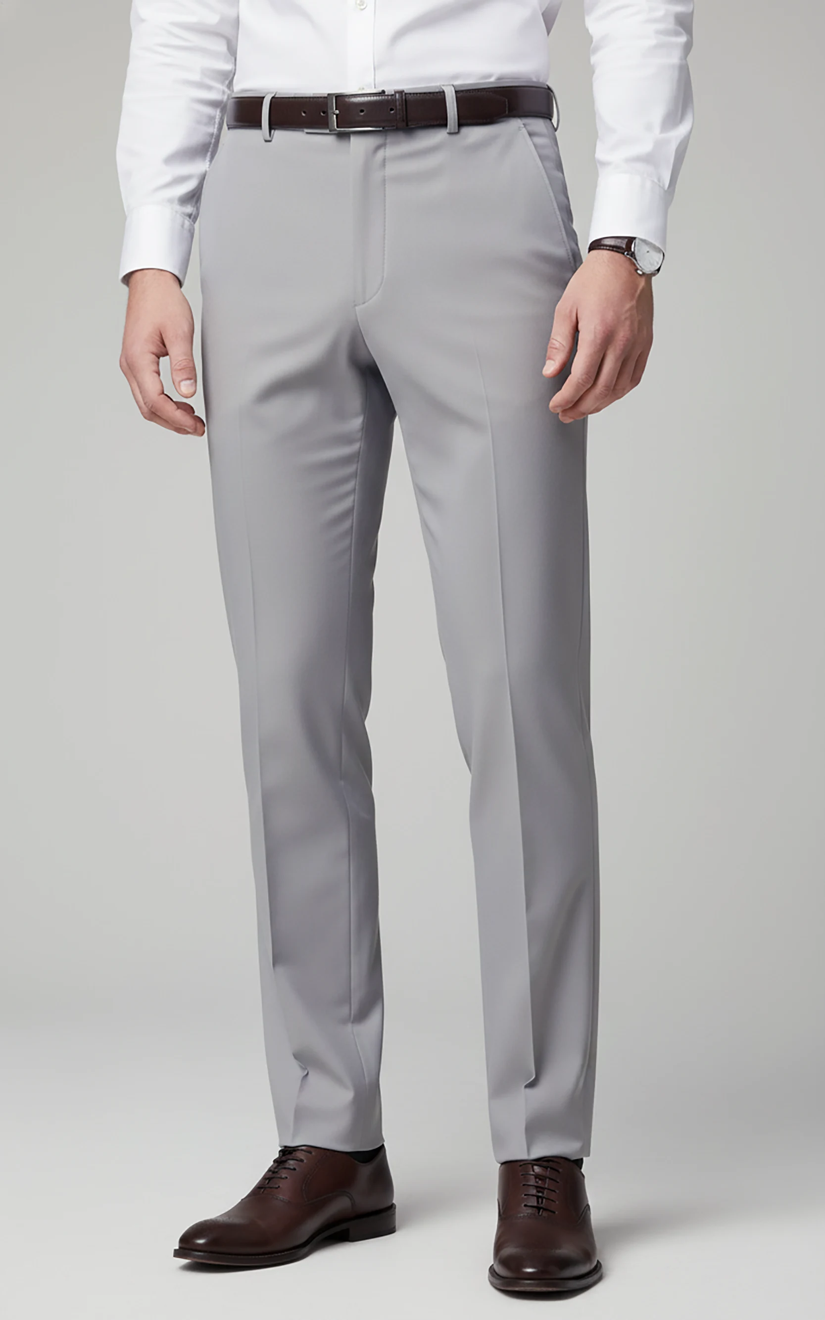 Designed with a flat front, subtle crease detailing, and a mid-rise waist, these Pants pair effortlessly with dress shirts and blazers, making them suitable for office wear, business meetings, and formal occasions. Finished with a secure waistband, belt loops, and a streamlined cut, these pants deliver timeless style with modern elegance.